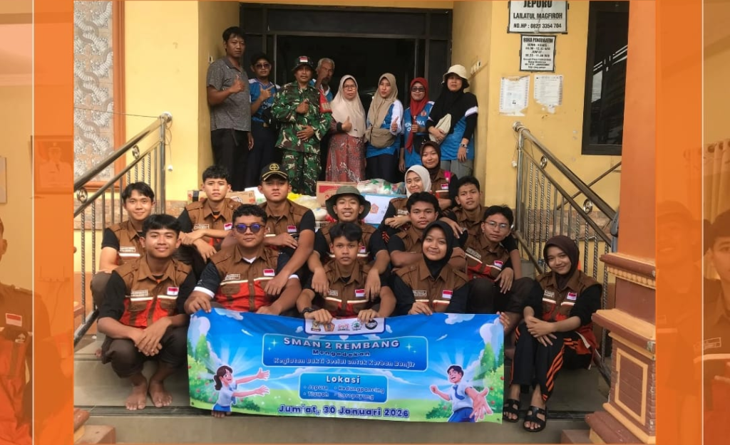 Rembang, SMA Negeri 2 Rembang melaksanakan Bakti Sosial untuk menyalurkan batuan sembako dari murid, Bapak/Ibu guru dan karyawan, serta dukungan kendaraan operasional dari Satuan Polisi Pamong Praja (Satpol PP) Kabupaten Rembang kepada warga terdampak banjir di Desa Jepuro, Tluwah, Kedungpancing, Doropayung Kabupaten Pati, Jawa Tengah, Jumat (30/01/2026). Sebagai bentuk kepedulian terhadap sesama, SMA Negeri 2 […]